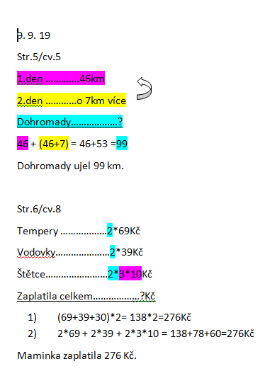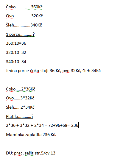 M - ústně malá násobilka, do sešitu slovní úlohy uč. str. 4/cv5, str.6/cv.8