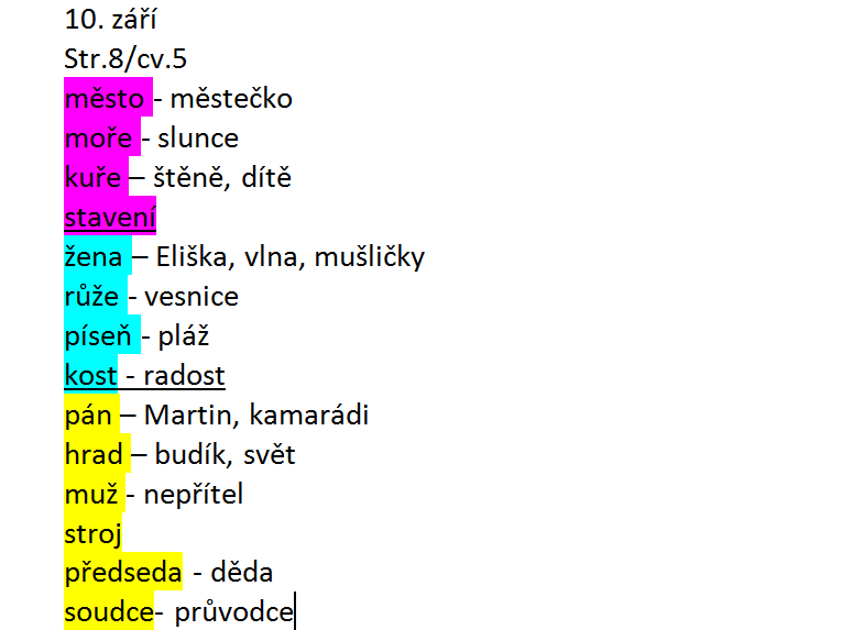 DÚ: naučit se slovíčka, protože v pondělí bude desetiminutovka.