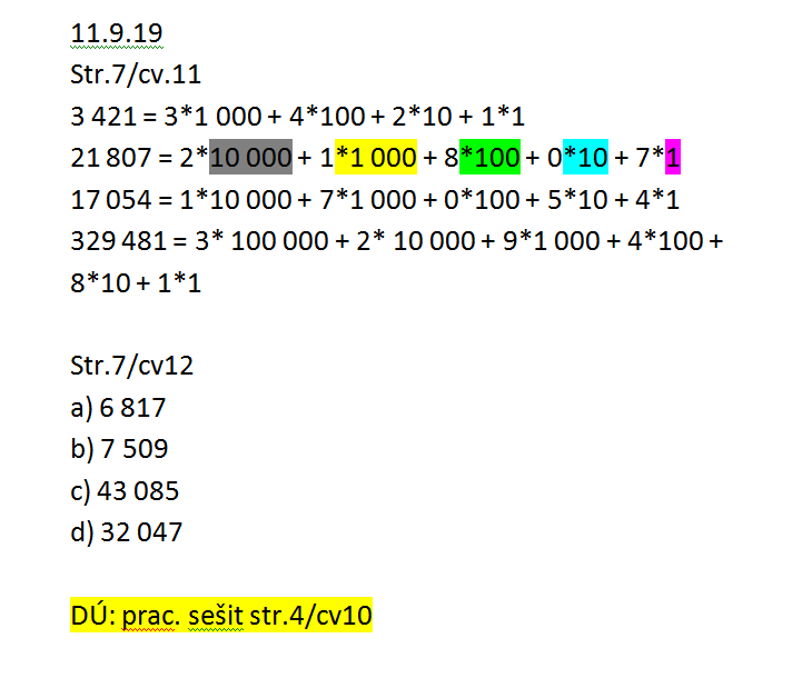 M - kontrola DÚ, rozvinutý zápis, do sešitu str.7/cv.11, 12