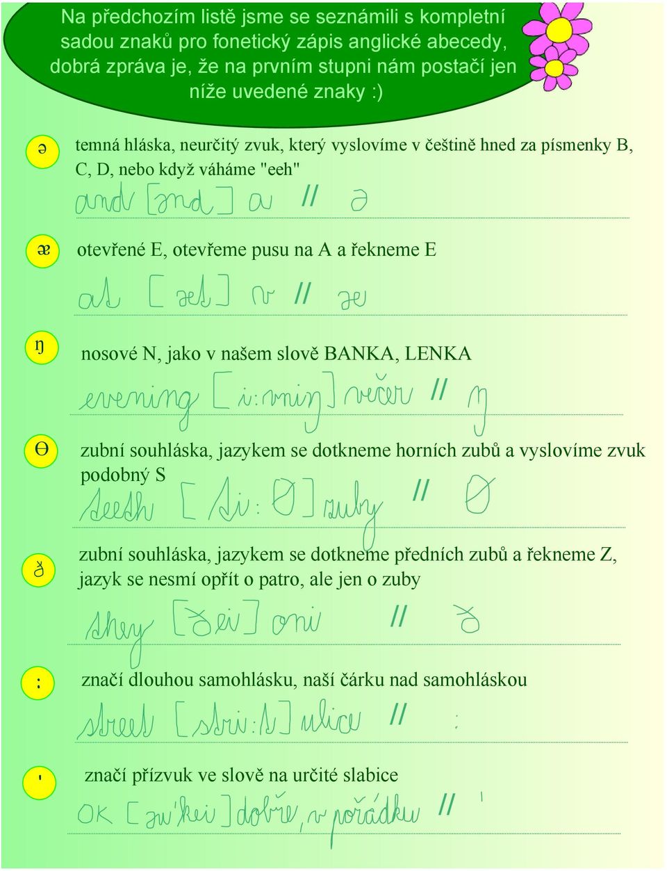 AJ - do slovníčku vlepit fonetické anglické znaky , zopakování poslechu v uč. str.5/cv.6, prac. sešit str.3/cv.4, 5, procvičování dialogu ve dvojicích