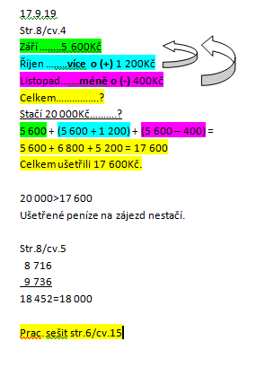 M - pětiminutovka, uč. str.7/cv14 do sešitu, zaokrouhlování str.8/cv.3