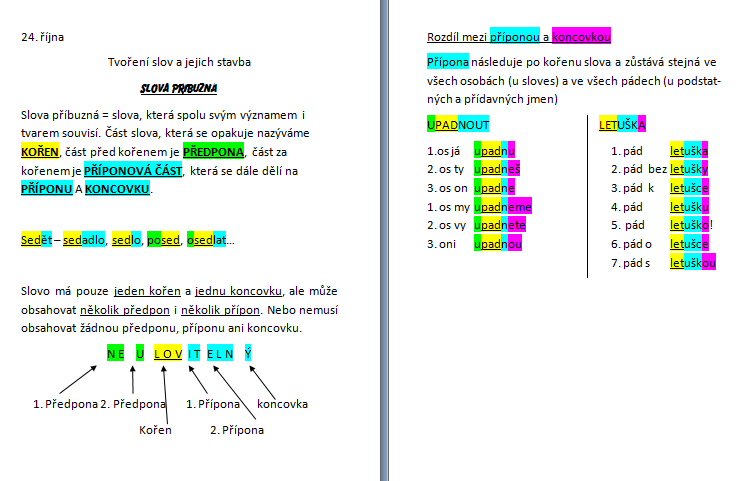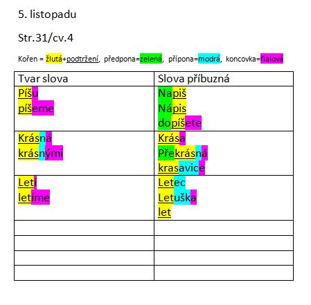 ČJ - stavba slova, do sešitu str.9/cv.9 cv.10