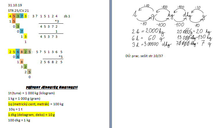 M - 2 cvičení v odkazu - 1.cv = zaokrouhlování na jednotky, 2.cv = dělení a násobení číslem 10, 100, 1 000. Cvičení přepiš do sešitu a vypočítej.