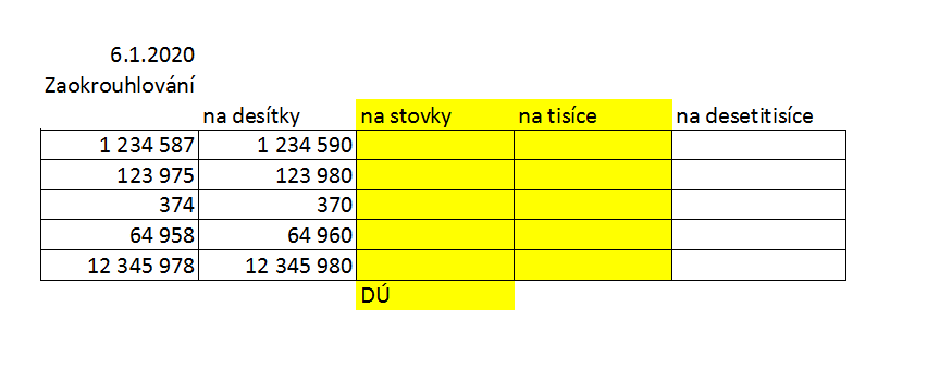 M - zaokrouhlování - pracovní list vlepený do sešitu, uč. str.9/cv.8 - dodělat doma.
